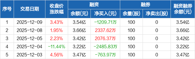 江龙船艇:融资净偿还1209.71万元,融资余额3.54亿元(12-09)