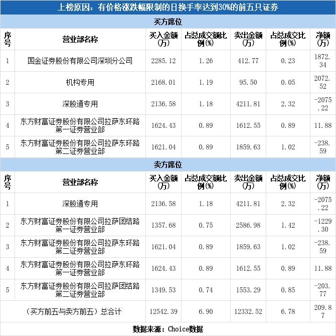 深交所2025年12月10日交易公开信息显示,江龙船艇因属于有价格涨跌幅限制的日换手率达到30%的前五只证券而登上龙虎榜。江龙船艇当日报收23.57元,涨跌幅为1.59%,换手率33.22%,振幅8.41%,成交额18.18亿元。