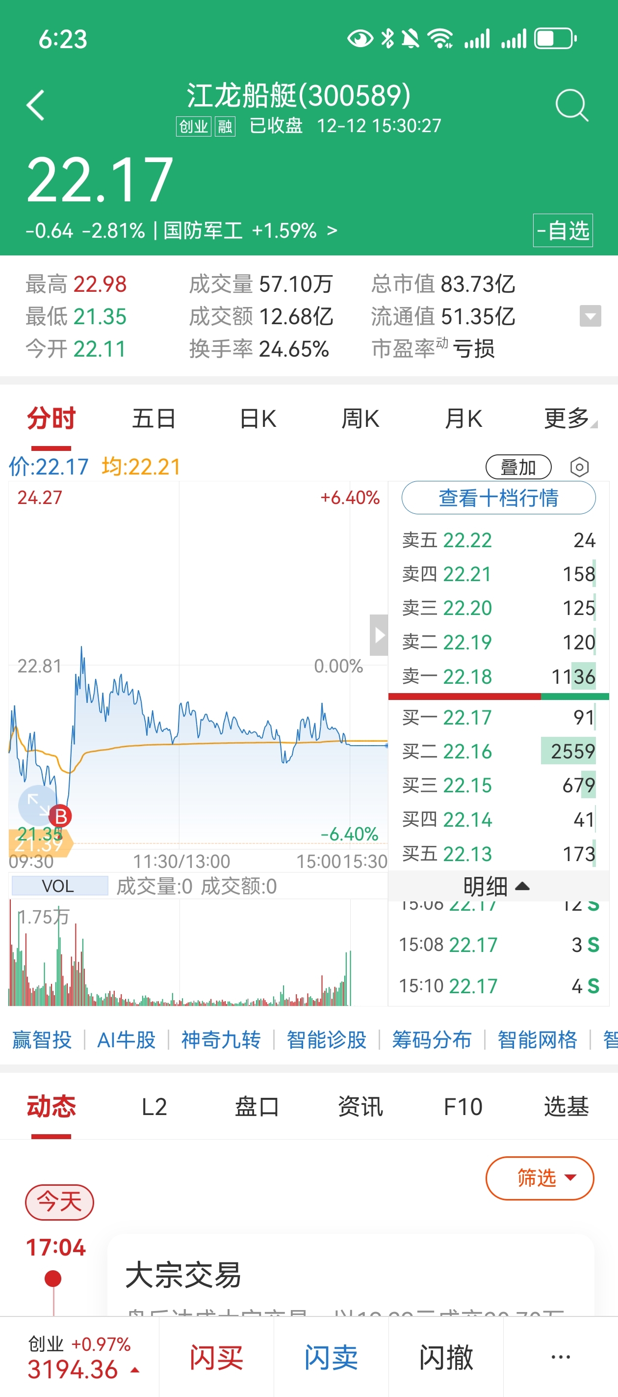 $江龙船艇(SZ300589)$ 真巧,刚刚好最低点。