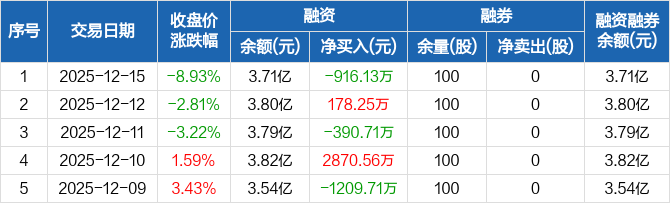 江龙船艇:融资净偿还916.13万元,融资余额3.71亿元(12-15)