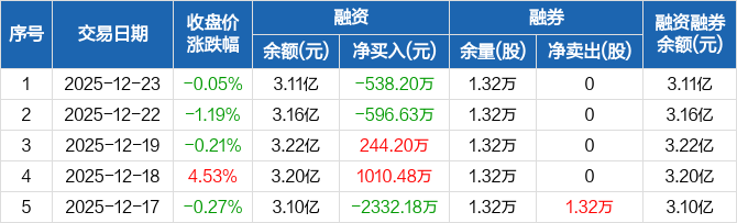 江龙船艇:融资净偿还538.2万元,融资余额3.11亿元(12-23)