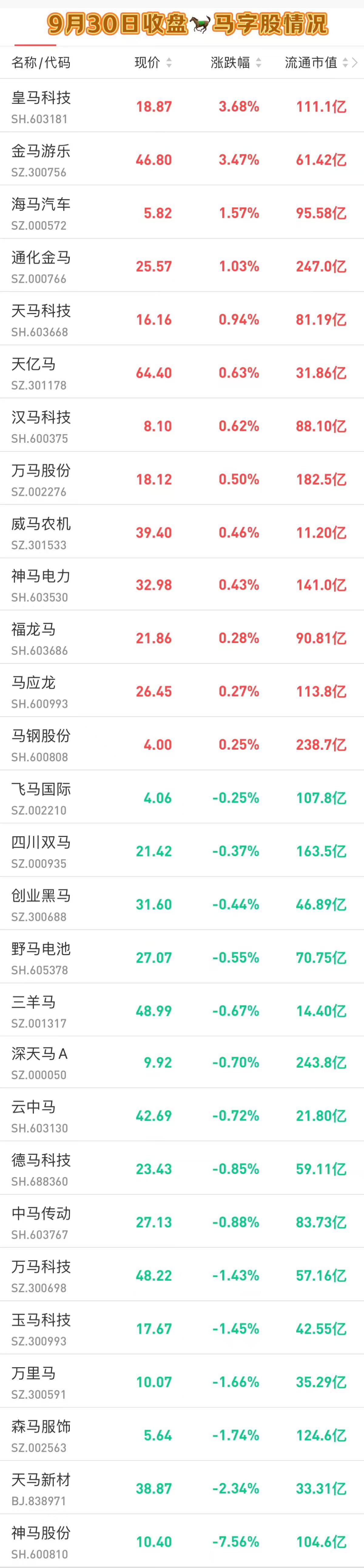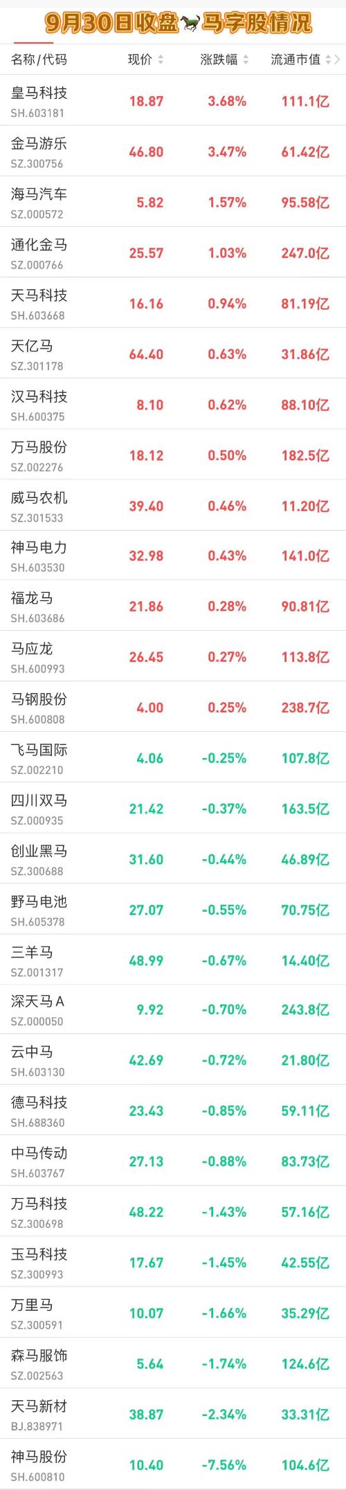 万里马看来是遥遥落后啊,不是万里马了,是慢里马了!看看9月30日收盘后最新的马字