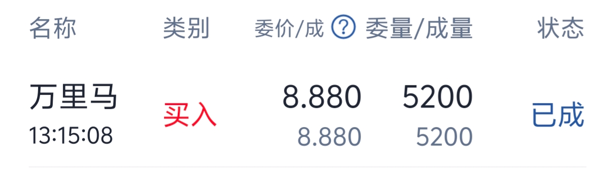$万里马(SZ300591)$ 今天刚进的!明天有肉吃吗?小小资金玩一下