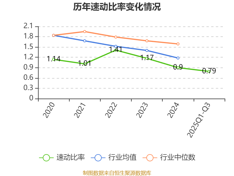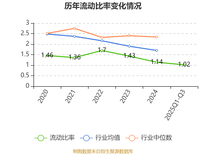 2025年前三季度,公司流动比率为1.02,速动比率为0.79。