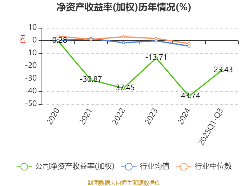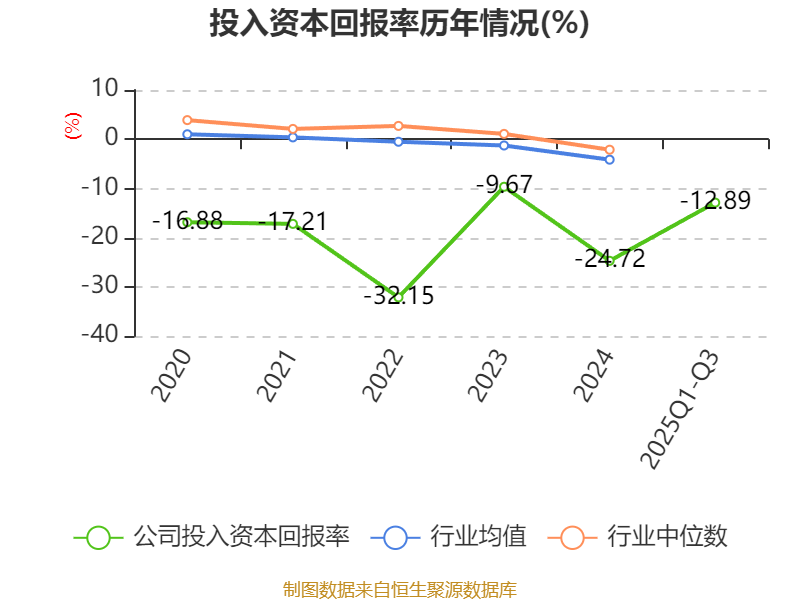 盈利能力方面, 2025年前三季度公司加权平均净资产收益率为-23.43%,同比下降9.18个百分点。公司2025年前三季度投入资本回报率为-12.89%,较上年同期下降4.27个百分点。