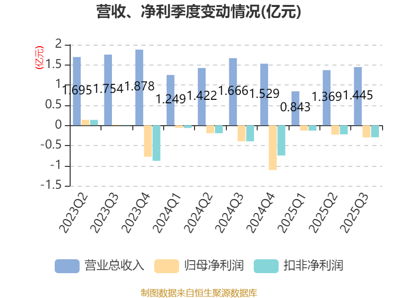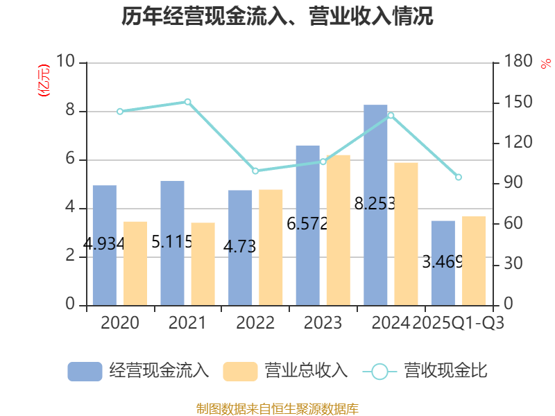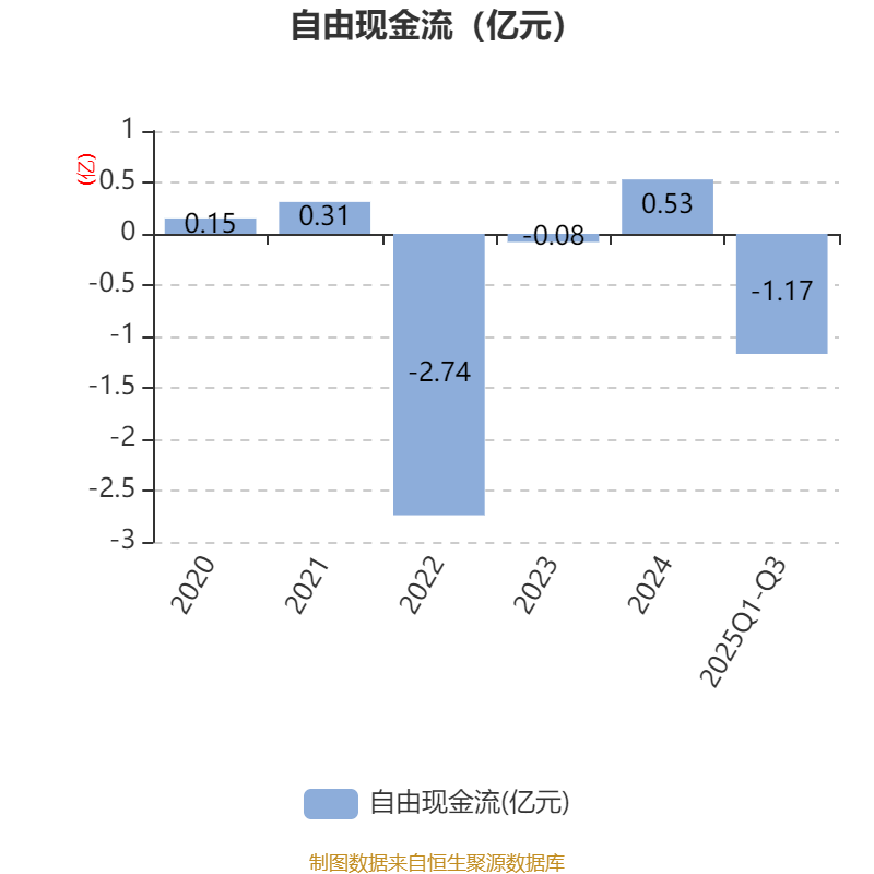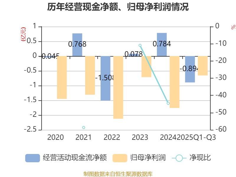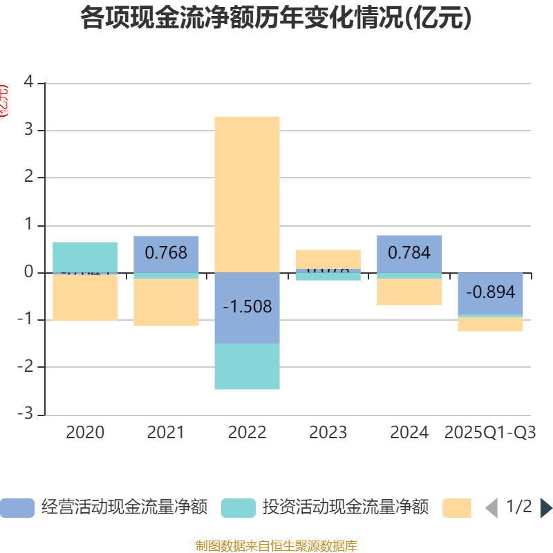 2025年前三季度,公司经营活动现金流净额为-8942.89万元,同比减少4845.45万元;筹资活动现金流净额-2975.75万元,同比减少162.9万元;投资活动现金流净额-477.07万元,上年同期为-1232.93万元。