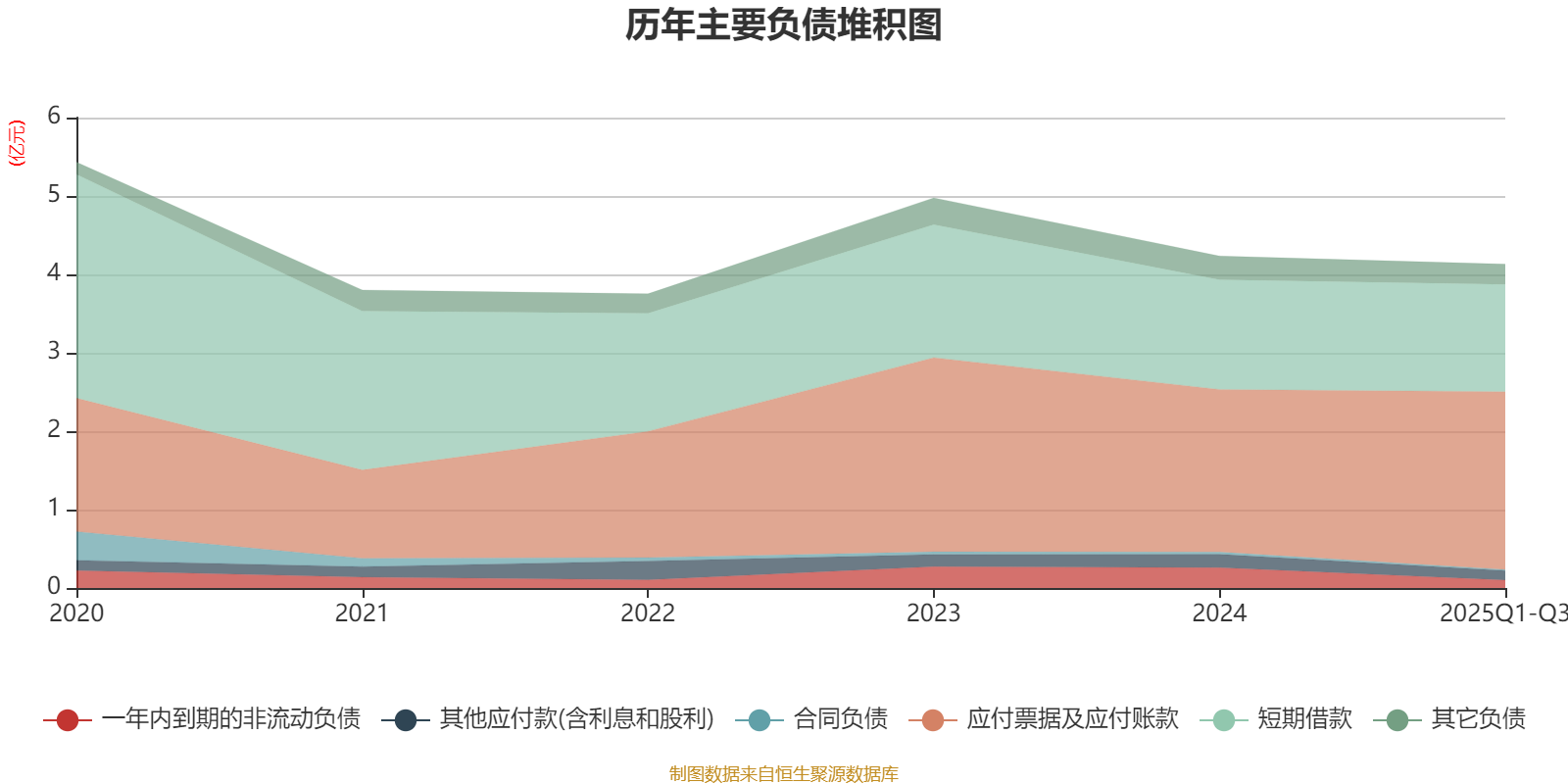 负债重大变化方面,截至2025年三季度末,公司应付票据及应付账款较上年末增加9.38%,占公司总资产比重上升5.63个百分点;一年内到期的非流动负债较上年末减少61.04%,占公司总资产比重下降1.95个百分点;短期借款较上年末减少2.17%,占公司总资产比重上升1.44个百分点;其他应付款(含利息和股利)较上年末减少28.91%,占公司总资产比重下降0.5个百分点。