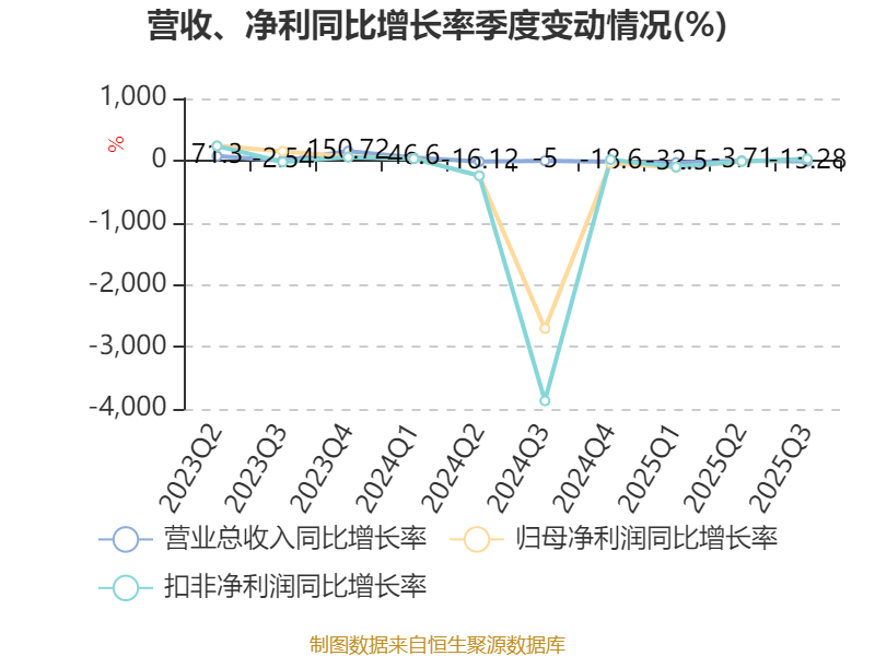 资产重大变化方面,截至2025年三季度末,公司货币资金较上年末减少75.07%,占公司总资产比重下降15.24个百分点;应收票据及应收账款较上年末增加41.94%,占公司总资产比重上升12.08个百分点;预付款项较上年末增加74%,占公司总资产比重上升1.27个百分点;固定资产较上年末减少6.45%,占公司总资产比重上升0.84个百分点。