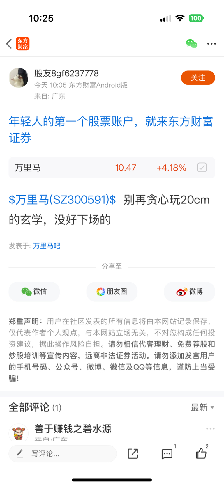 温馨提示: 1.根据《证券法》规定,禁止编造、传播虚假信息或者误导性信息,扰乱证券市场;2.用户在本社区发表的所有资料、言论等仅代表个人观点,与本网站立场无关,不对您构成任何投资建议。用户应基于自己的独立判断,自行决定证券投资并承担相应风险。《东方财富社区管理规定》