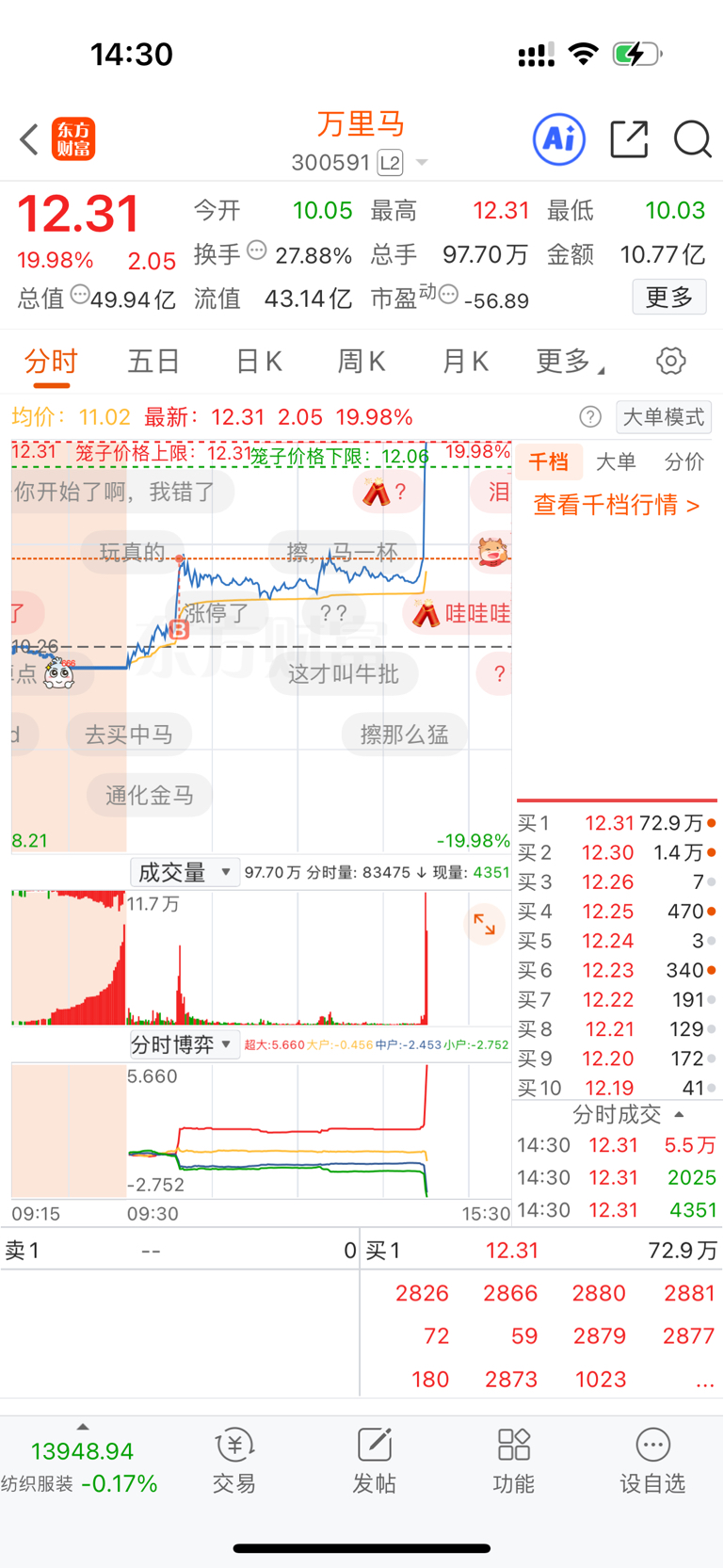 $万里马(SZ300591)$ 妈呀,我真以为我早上挂山顶了