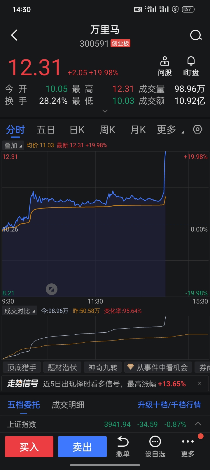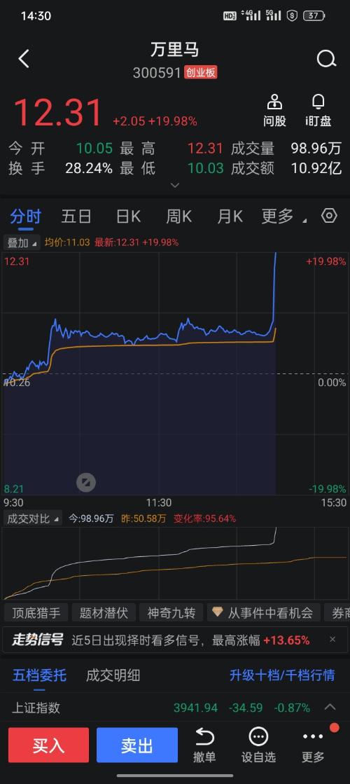 $万里马(SZ300591)$  冲高一线,加油加油加油。
