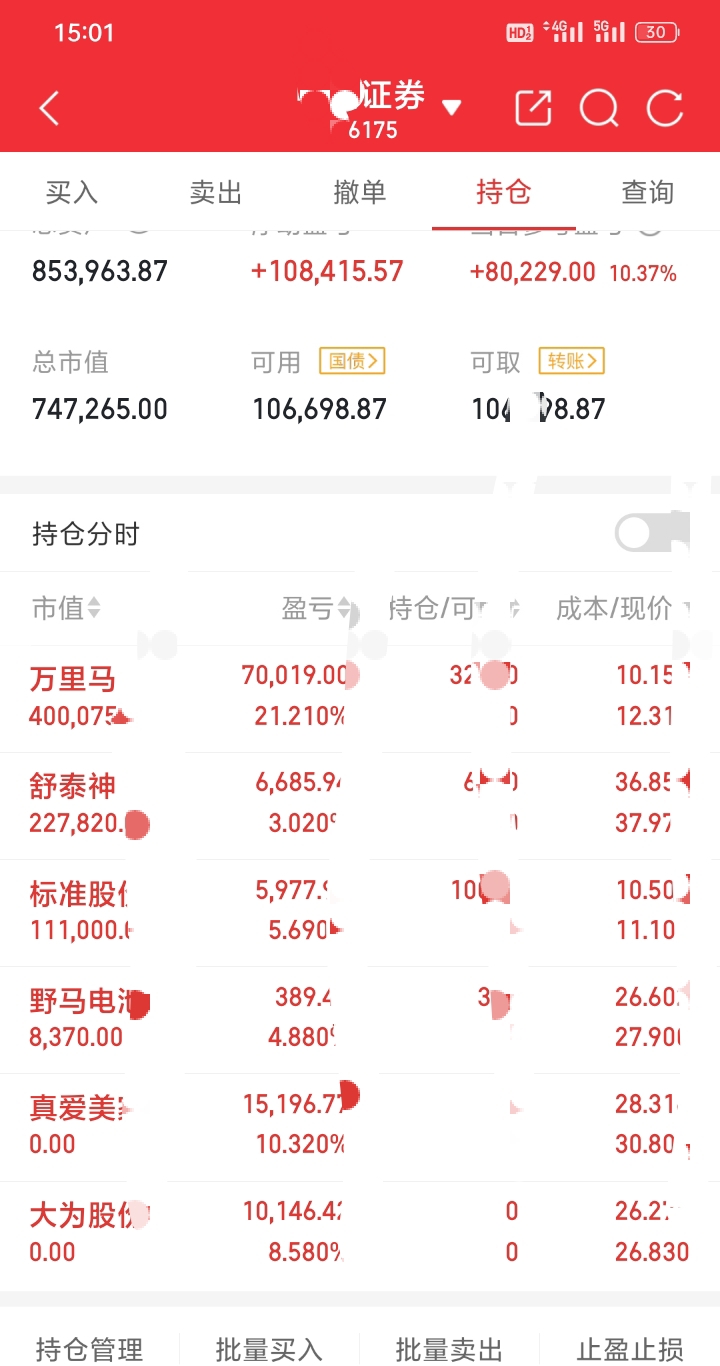 操作回顾:止盈真爱美家、大为股份;新介入万里马、标准股份。