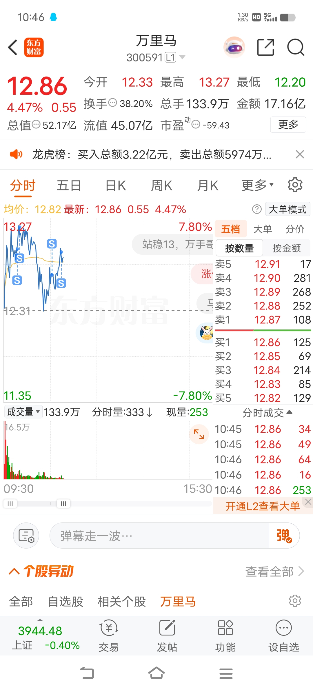 $万里马(SZ300591)$ 手里还有一万股,卖了一早晨了,成本到了7.32元