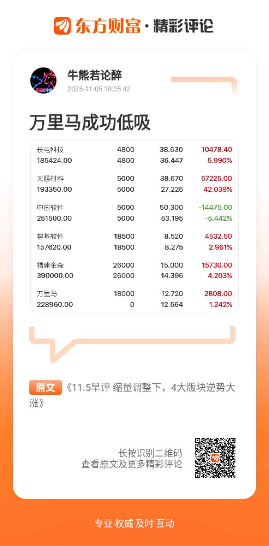 观察:吉视传媒,万里马,海陆重工 持仓:长电科技,天赐材料,中国软件,榕基软件,福建金森