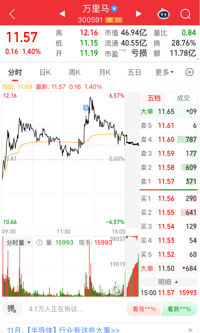 $万里马(SZ300591)$ 午盘差点卖了、忍了一下、下午拉到上午的高点出了