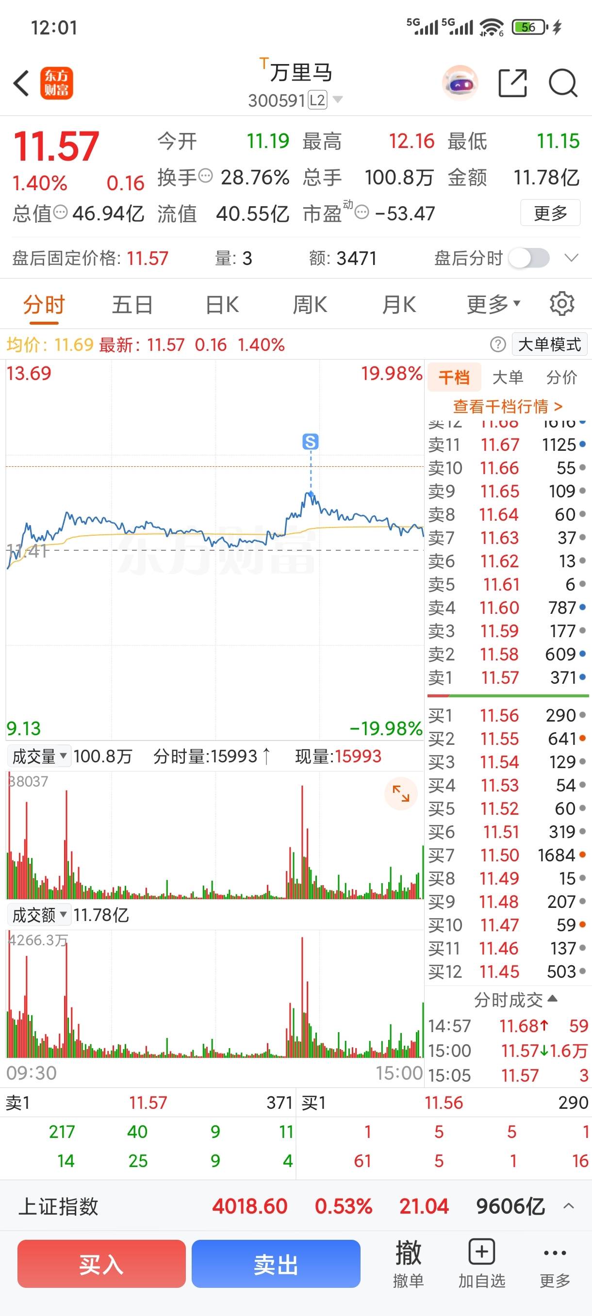 $万里马(SZ300591)$ 降了半仓,得5点,总共还亏6点……还得相信自己判断才行!