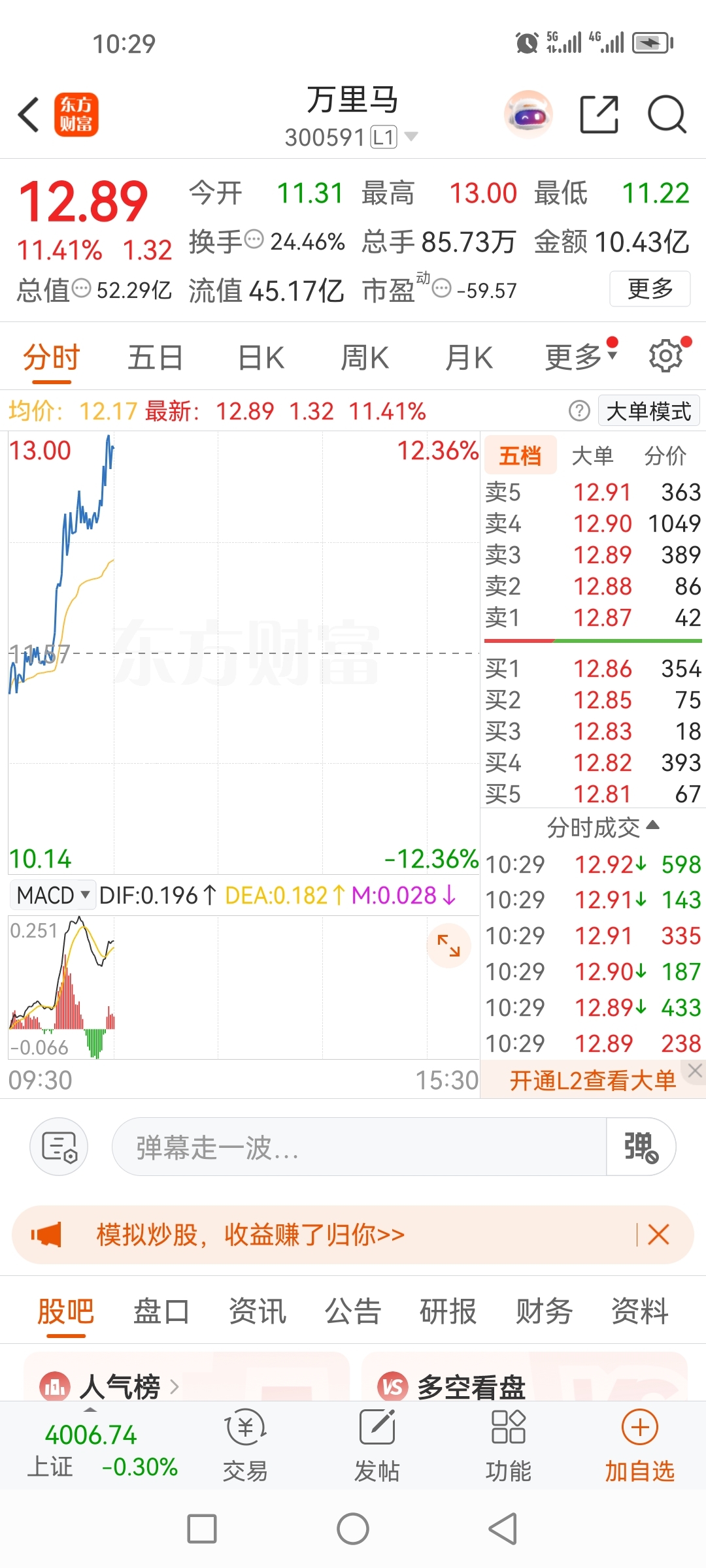 $万里马(SZ300591)$ ,哥没看错你,不愧是日行万里,跑起来就是牛叉!