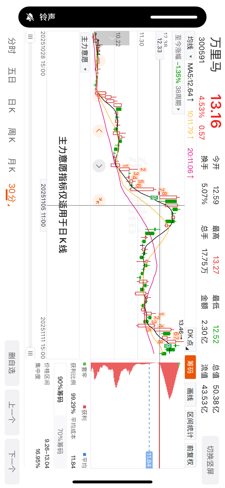 $万里马(SZ300591)$ 明天应该不会低开吧,在低开不得回到箱体在震荡了。不得被套的死死的。明天看福龙马情绪了,福龙马,情绪好,还有机会突破箱体上沿。13.16
