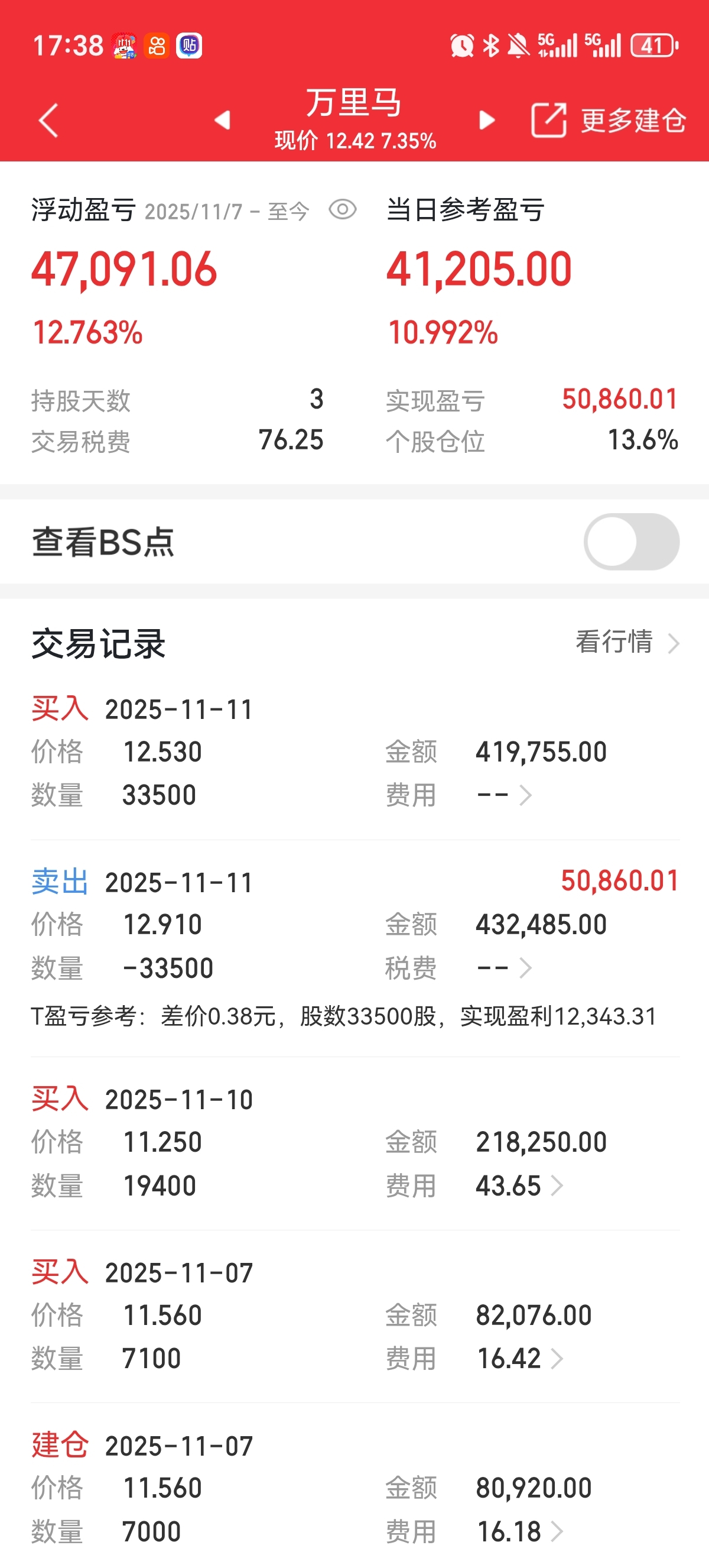 $万里马(SZ300591)$ 今天没在高位出,不过做了个t感觉还是挺好继续拿着#炒股日记#