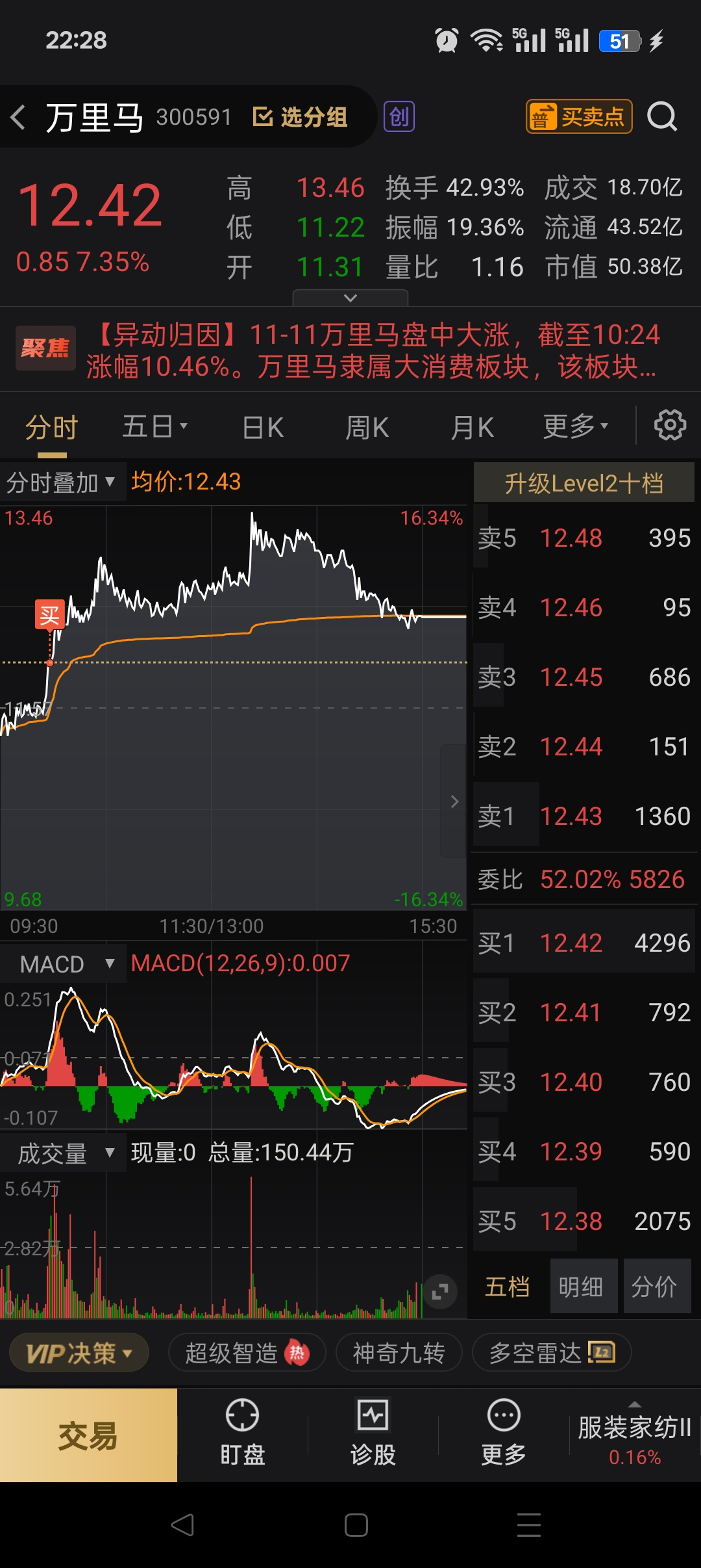 $万里马(SZ300591)$ 十一点变成二三点 一天天的净是盘中开香槟了