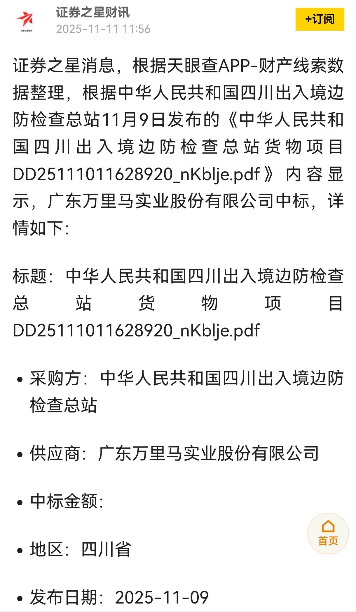 经查询,万里马近期又中标多地边防检查总站项目,结合此前的股权激励方案,2025年“扭亏为盈”的目标,万里马真的要甩掉亏损几年的帽子,要困境反转了。
