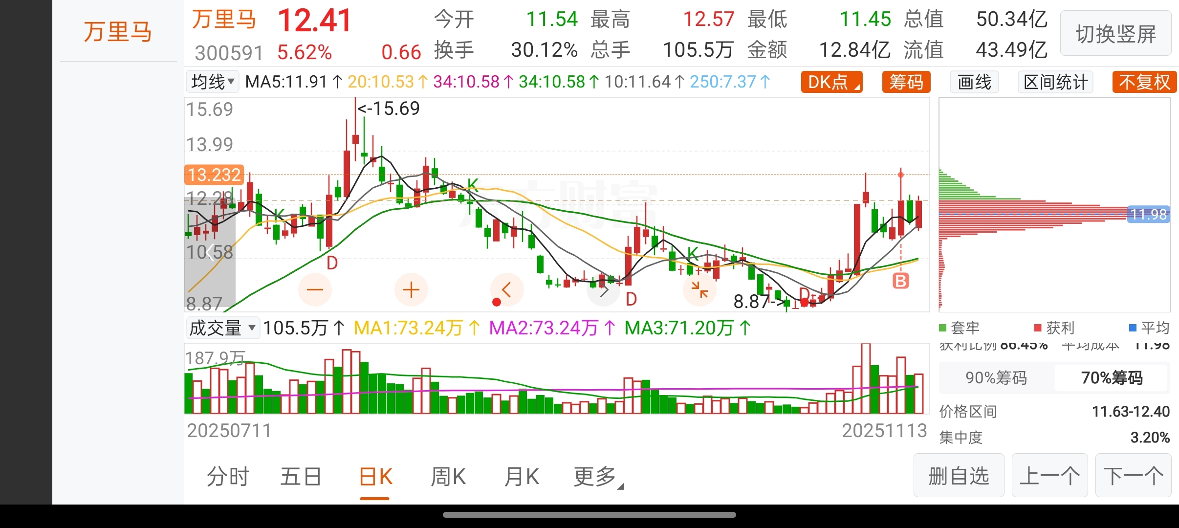 周一止盈福龙马追进来万里马,以为可以打板,结果被套,不过看到昨天没跌破5日线,今