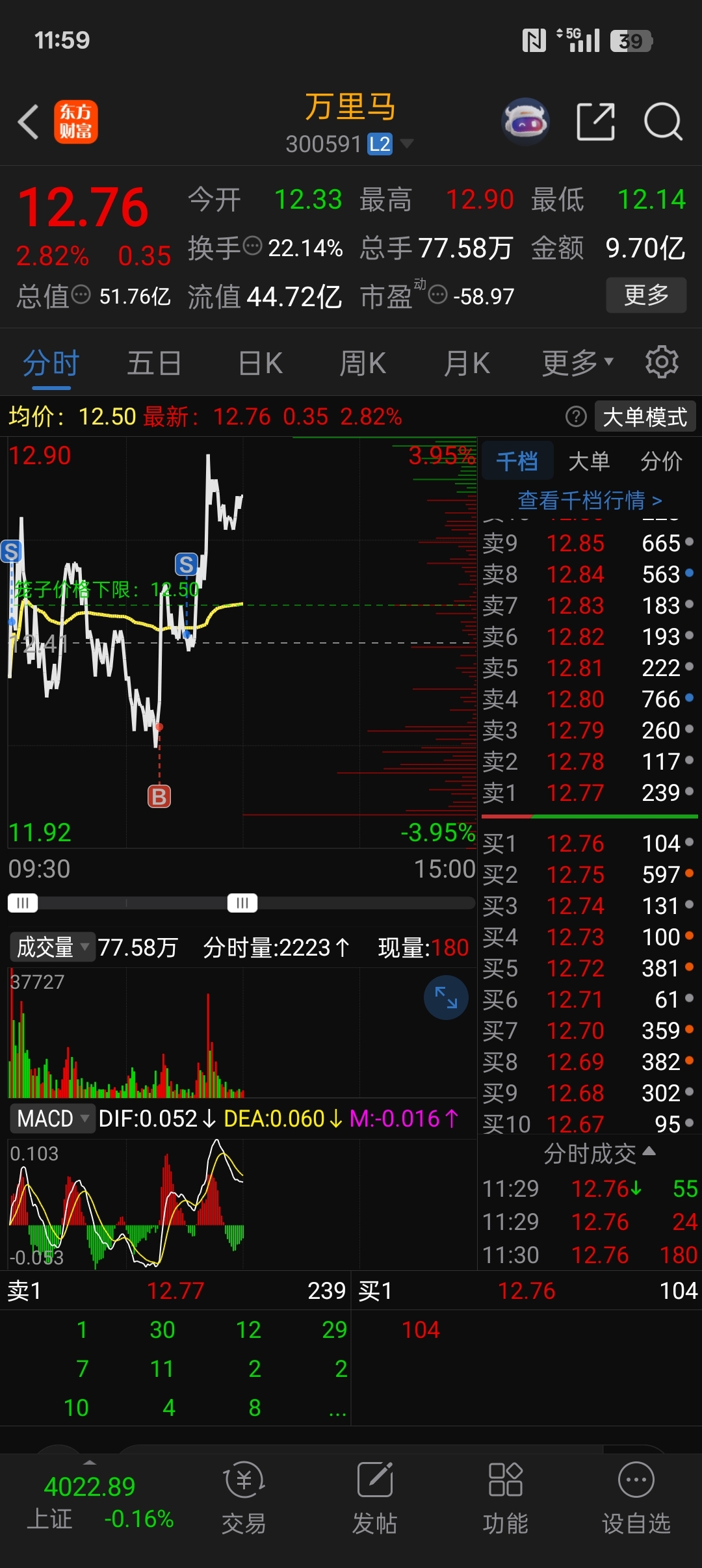 $万里马(SZ300591)$ ?这样是赚钱还是没赚?今天底仓走不了了,所以反指未必有效!