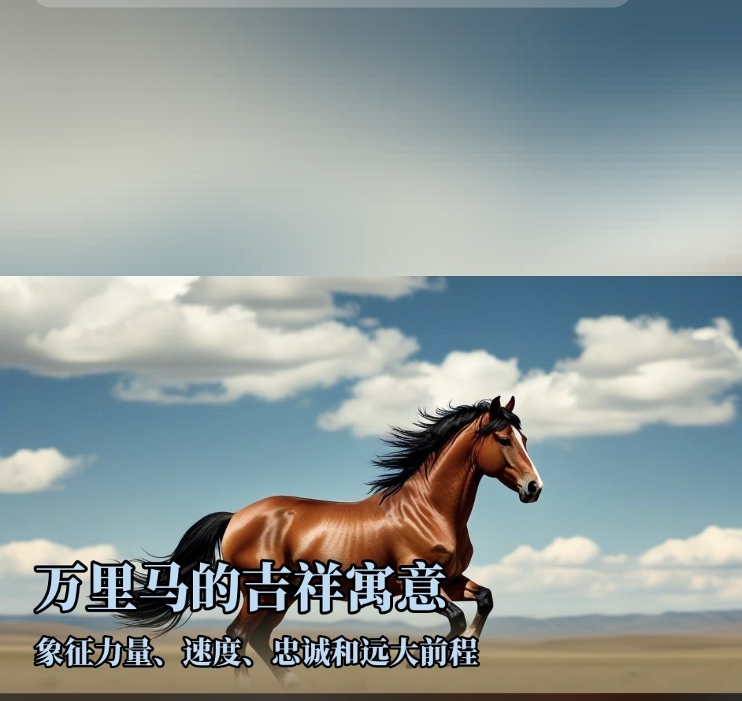万里马的吉祥寓意主要体现在象征力量、速度、忠诚和远大前程,其典故多与古代千里马传