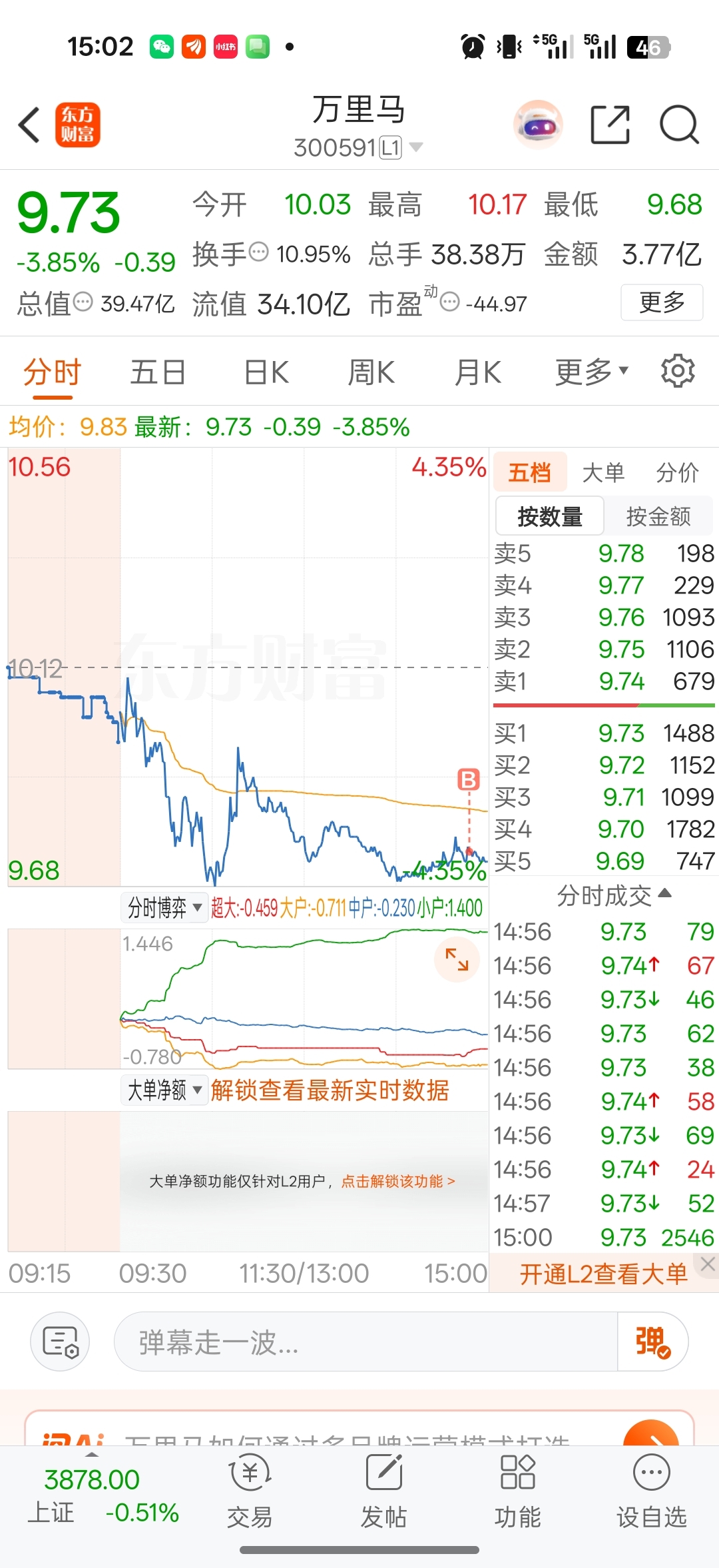 万里马尾盘补仓,9.7感觉支撑性很强,有可能已经接近主力持仓成本。希望明天有好的