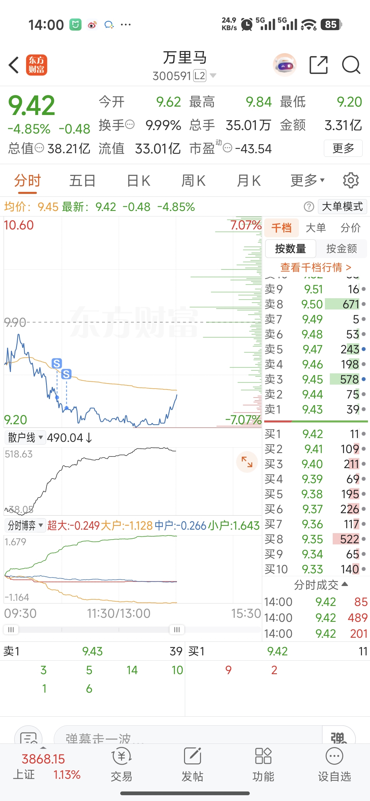 $万里马(SZ300591)$ 割肉的 只会跟福龙马 真不是东西