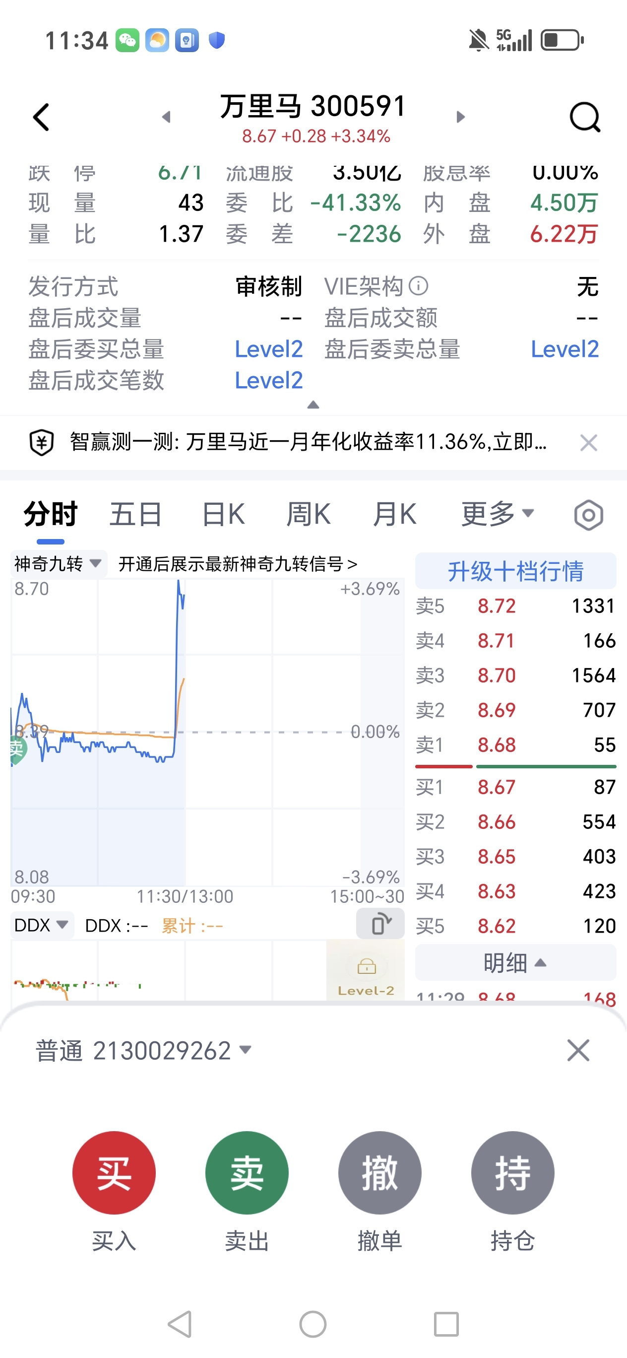 我开盘就卖光了,一直没涨,13块钱的底,等了好久好久,今天应该不会涨停吧?