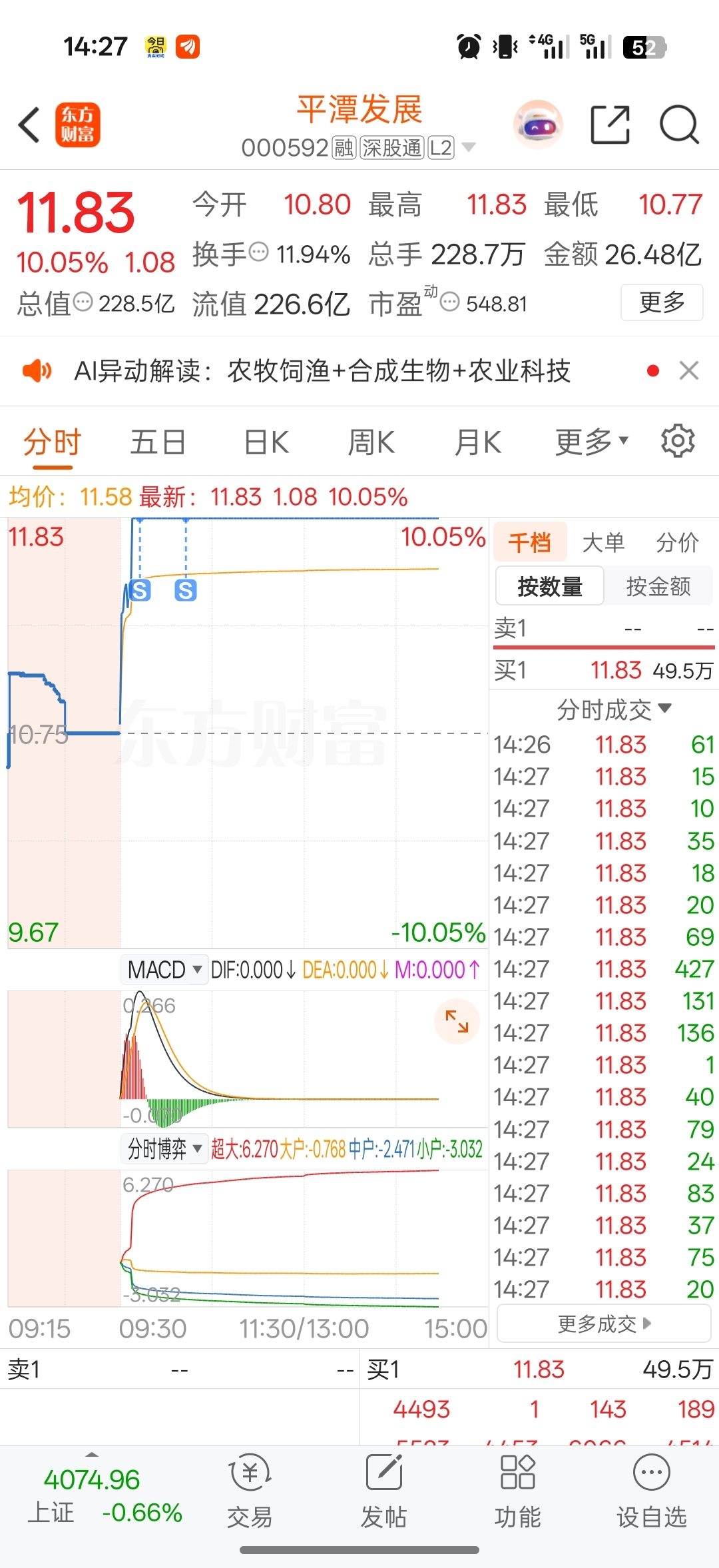 感觉万里马要涨停呢?今天再涨5个点,我就考虑进场了。锚定平潭发展一字板能不能带动