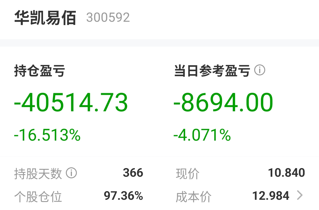 $华凯易佰(SZ300592)$ 主力啊,我拿你整整一年啊,这一年我没换任何票,就在你这里面死扛,4.7号关税你跌停!
