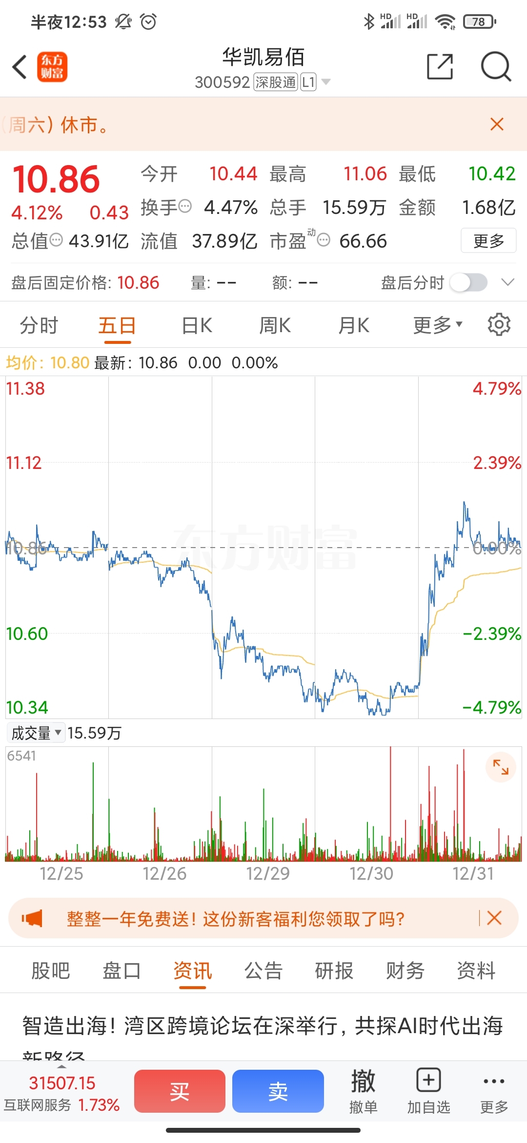 $华凯易佰(SZ300592)$ #炒股日记#