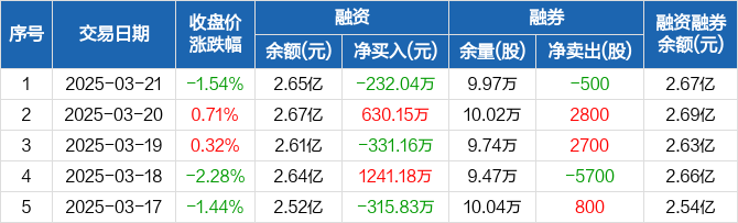 新雷能:融资净偿还232.04万元,融资余额2.65亿元(03-21)