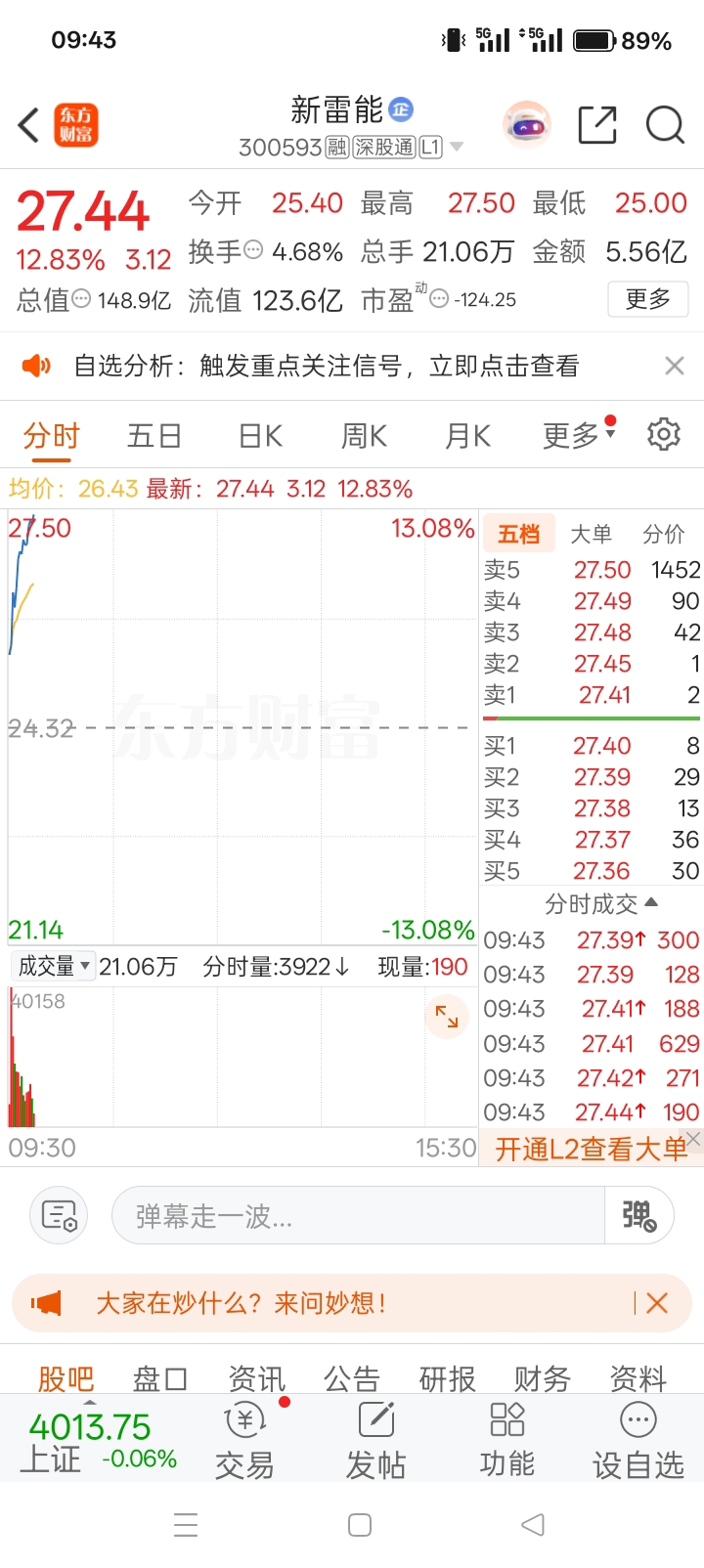 早上9.25通知兄弟们进的雷老虎,冲上来了,新雷能,一定能,上车的朋友坐好扶稳!