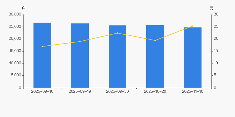 截至2025年11月10日,公司最新总股本为5.42亿股,其中流通股本为4.5亿股。户均持有流通股数量由上期的1.75万股上升至1.82万股,户均流通市值46.05万元。