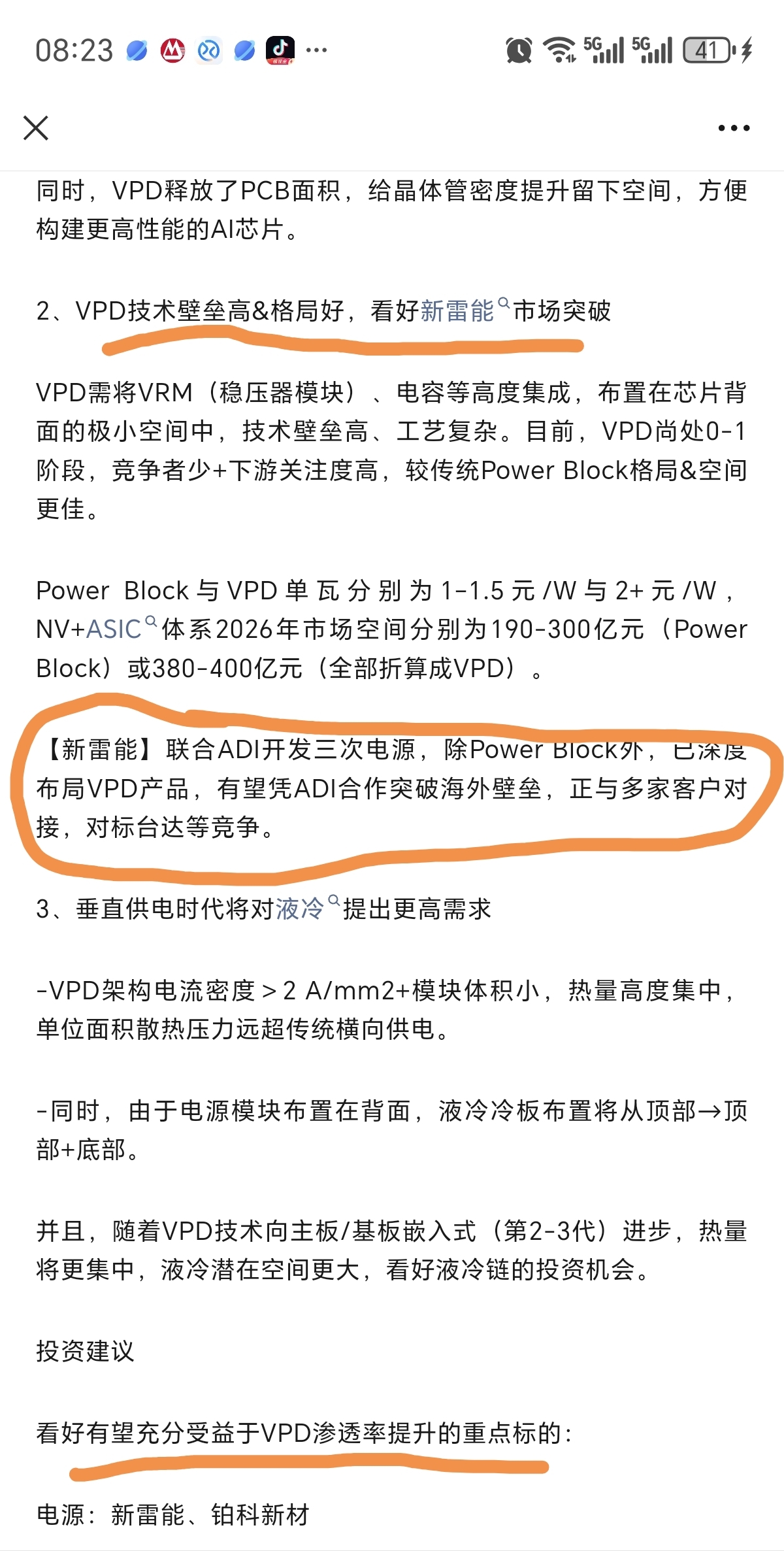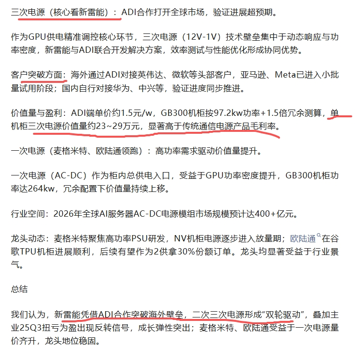 $新雷能(SZ300593)$ 昨天收盘后的调研很多信息:1低空卫星领域早有产品,并将作为后续业务核心发展,2和Adi合作属实(之前很多小作文写的有道理),3重点就是高端的三次电源布局,4 VPD产品是重要看点,5准备在马来西亚建厂