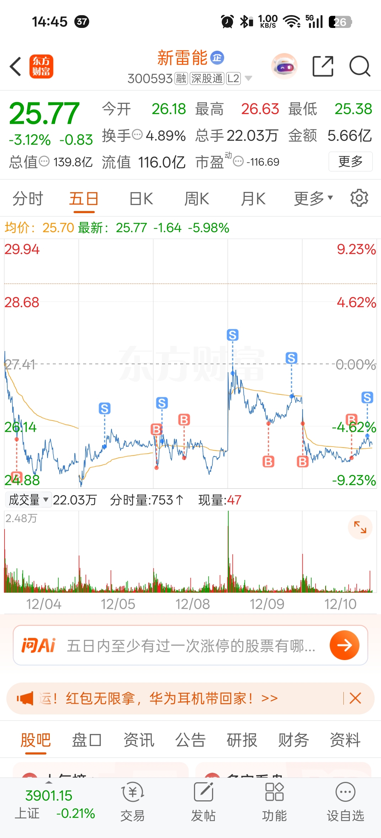 $新雷能(SZ300593)$ 听北京大师的话每天小t一下,虽然还亏十个点