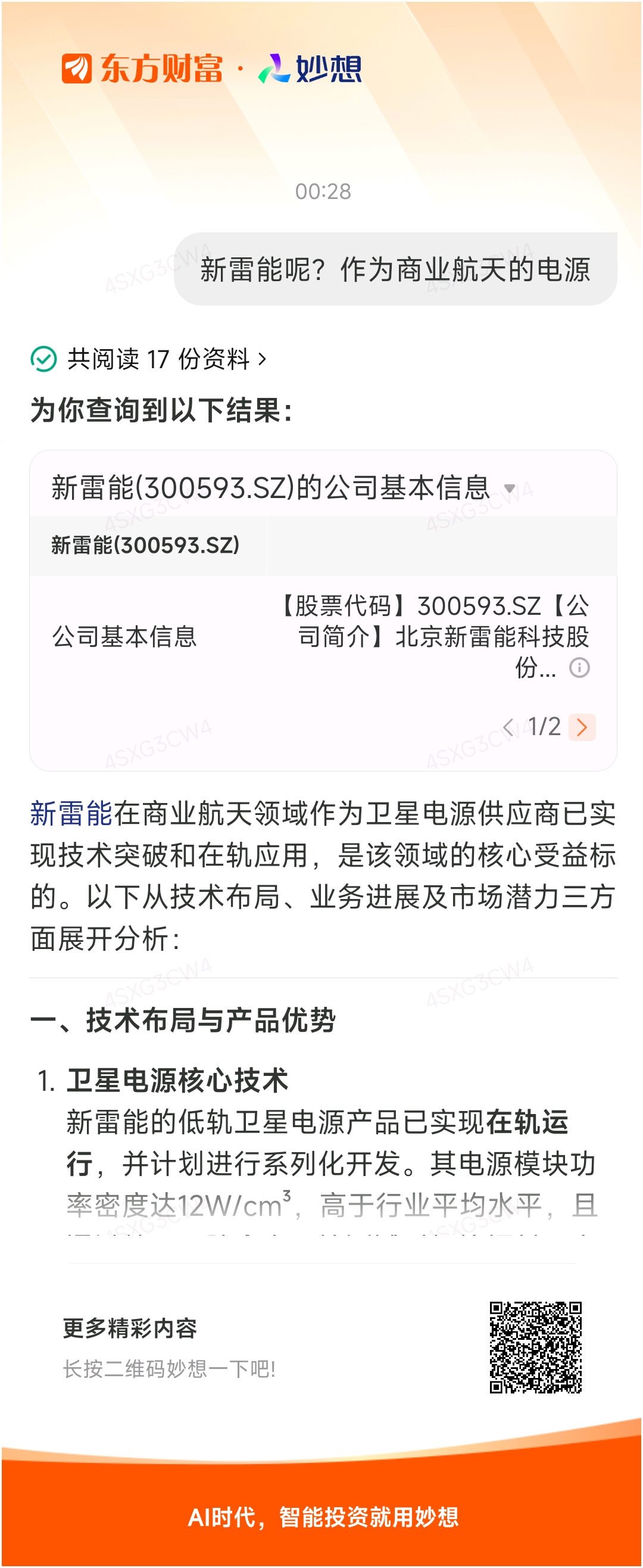 #@妙想,你怎么看?# 妙想一下:新雷能呢?作为商业航天的电源