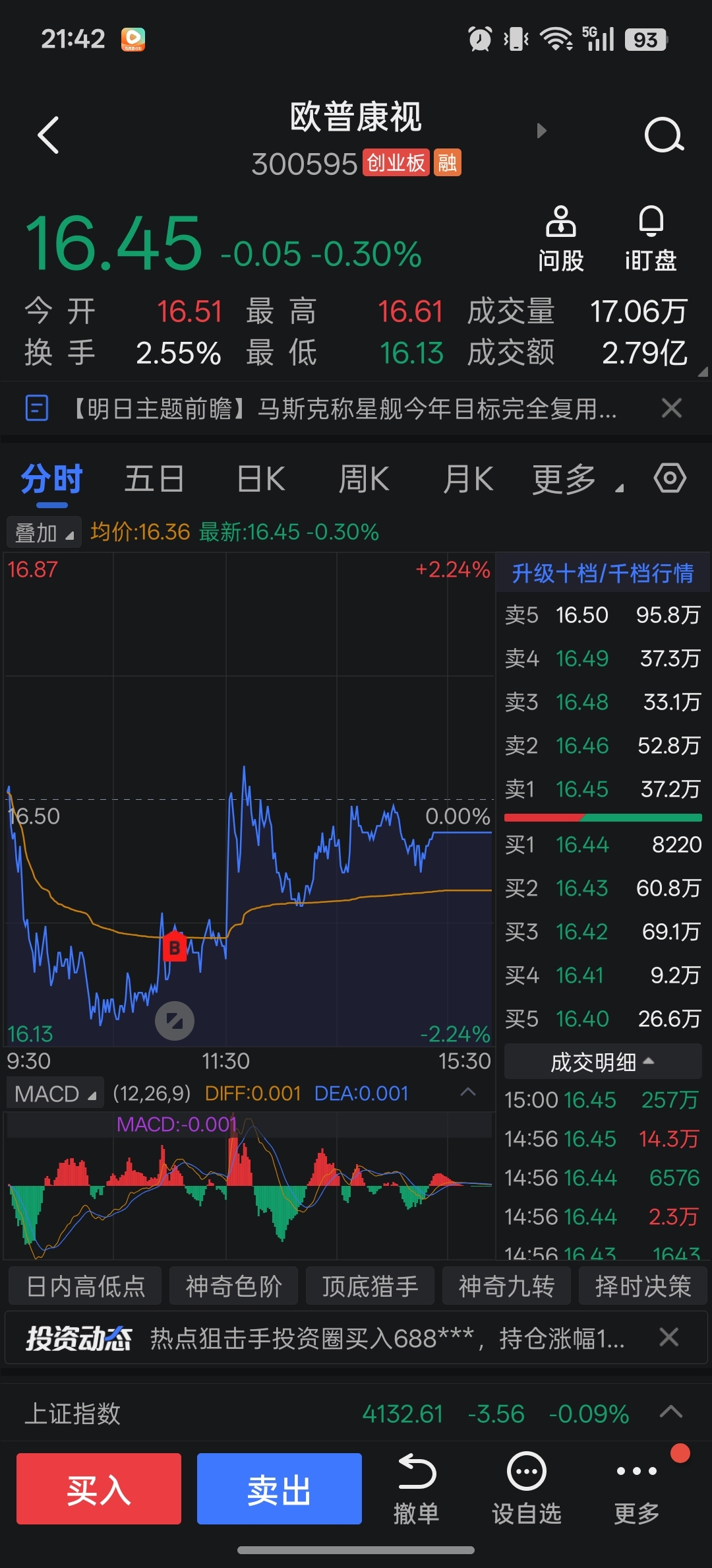 $欧普康视(SZ300595)$ 我就进来躲一下,明天就走,主力别闷我