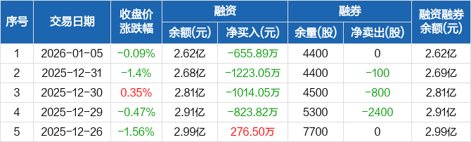 利安隆:融资余额2.62亿元,创近一年新低(01-05)