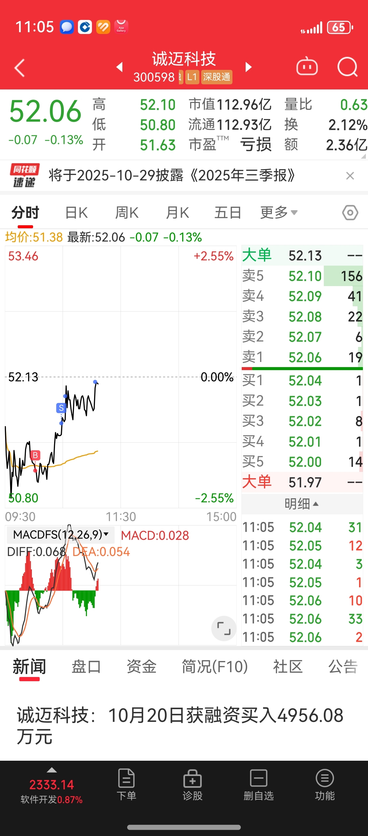 $诚迈科技(SZ300598)$ 努力做T赚钱钱