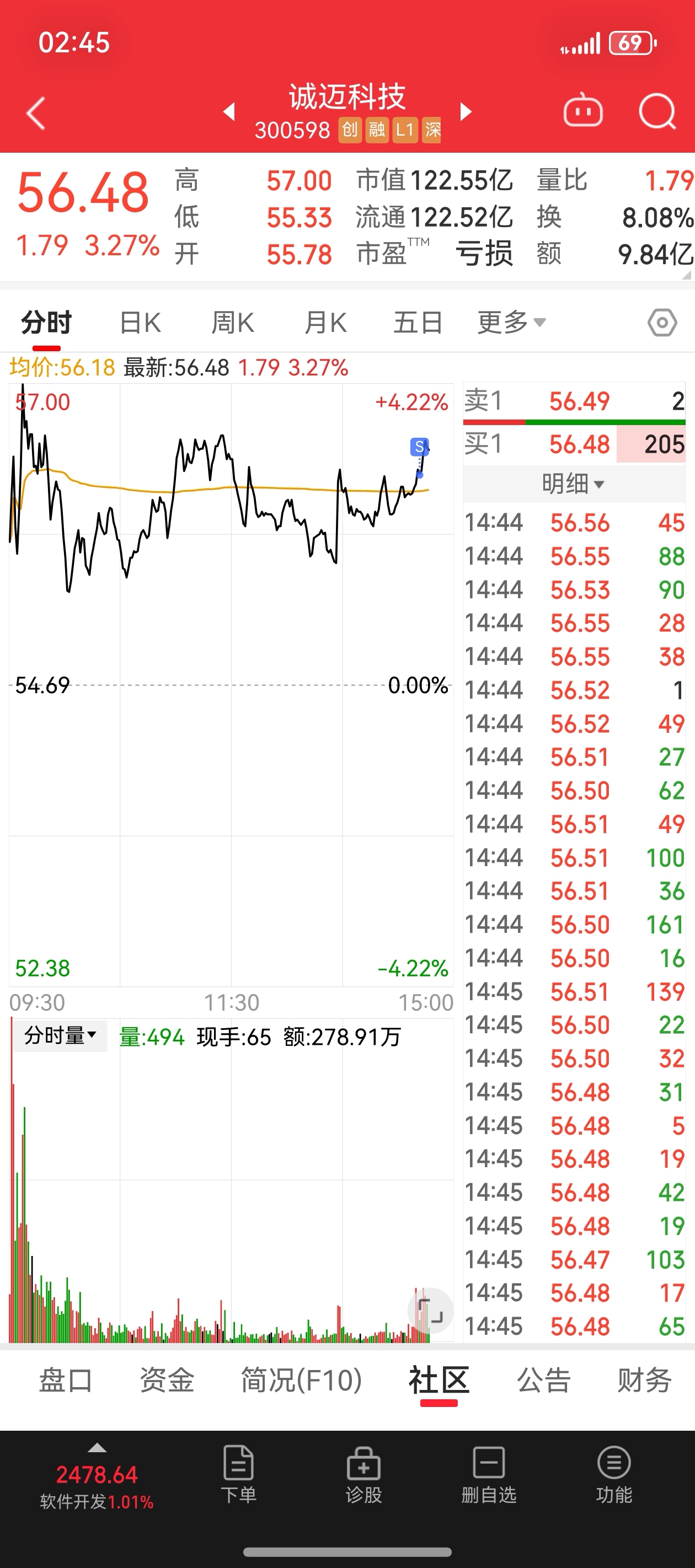$诚迈科技(SZ300598)$ 卖了就涨。兄弟们发财