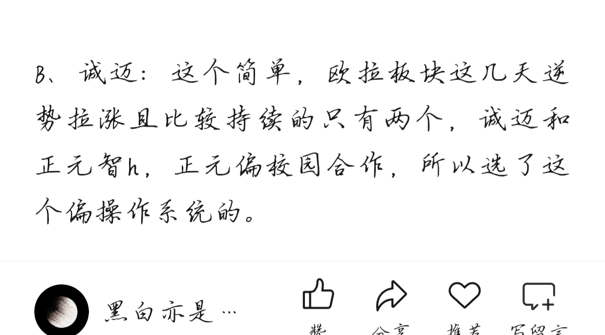温馨提示: 1.根据《证券法》规定,禁止编造、传播虚假信息或者误导性信息,扰乱证券市场;2.用户在本社区发表的所有资料、言论等仅代表个人观点,与本网站立场无关,不对您构成任何投资建议。用户应基于自己的独立判断,自行决定证券投资并承担相应风险。《东方财富社区管理规定》
