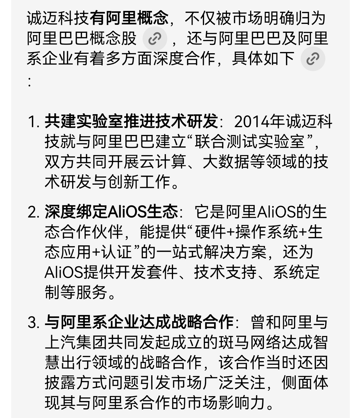$诚迈科技(SZ300598)$ 你不也是阿里概念吗?咋尾盘没动静呢?