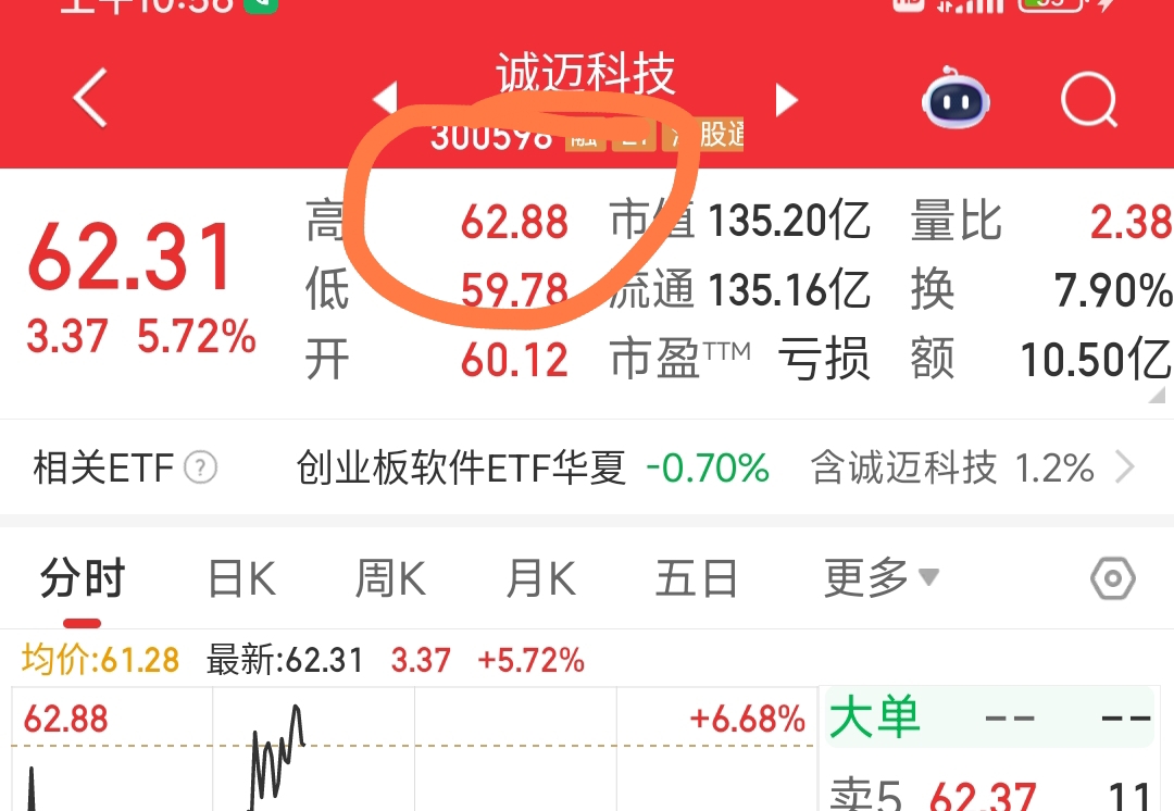 $诚迈科技(SZ300598)$ 对子顶。今年的高点