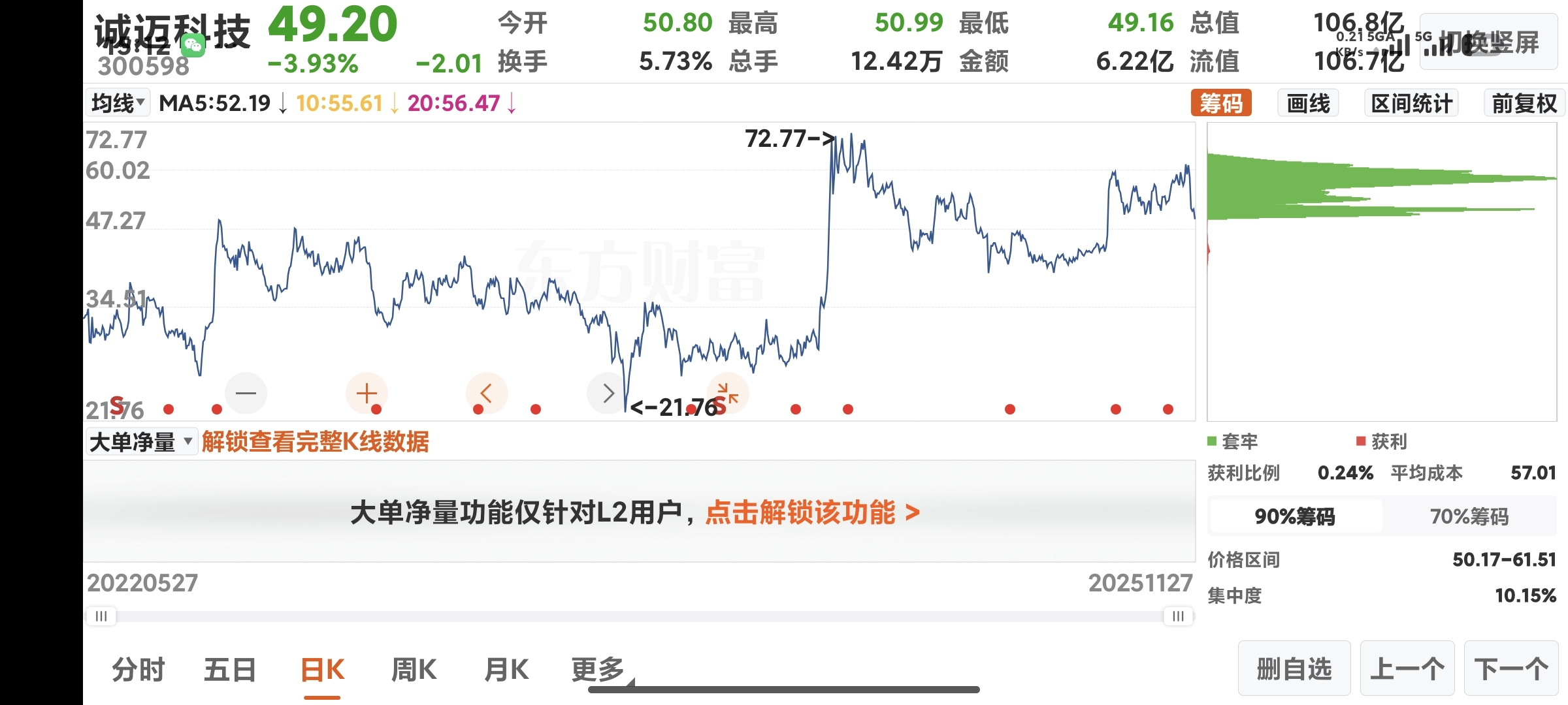 $诚迈科技(SZ300598)$ 仅有0.24%的获利盘,其它的全部被套,恶庄真牛