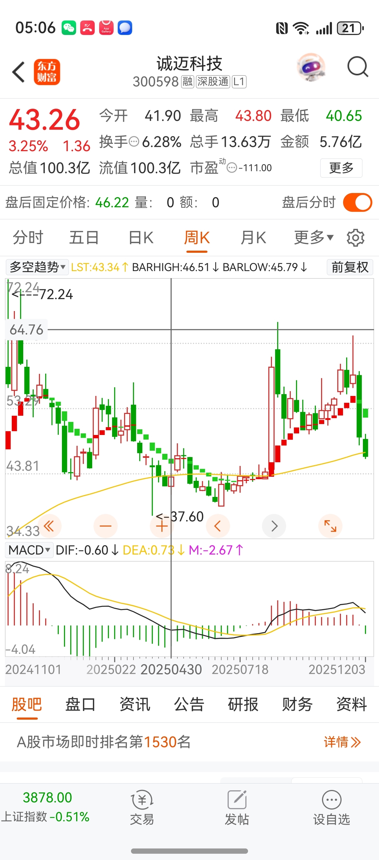 $诚迈科技(SZ300598)$ 有可能到37.60做双底,如果止不住就到21.76做三重底