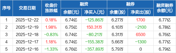 诚迈科技:融资净偿还125.86万元,融资余额6.74亿元(12-22)